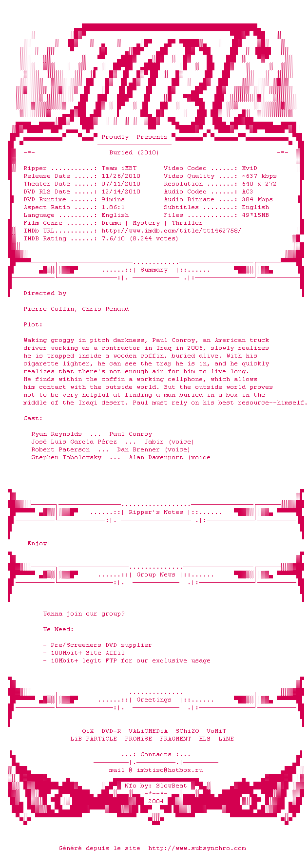 Voir le nfo de la release Buried.2010.720p.BluRay.x264-KaKa