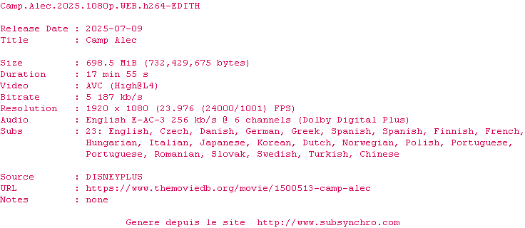 Voir le nfo de la release Camp.Alec.2025.1080p.WEB.H264-EDITH