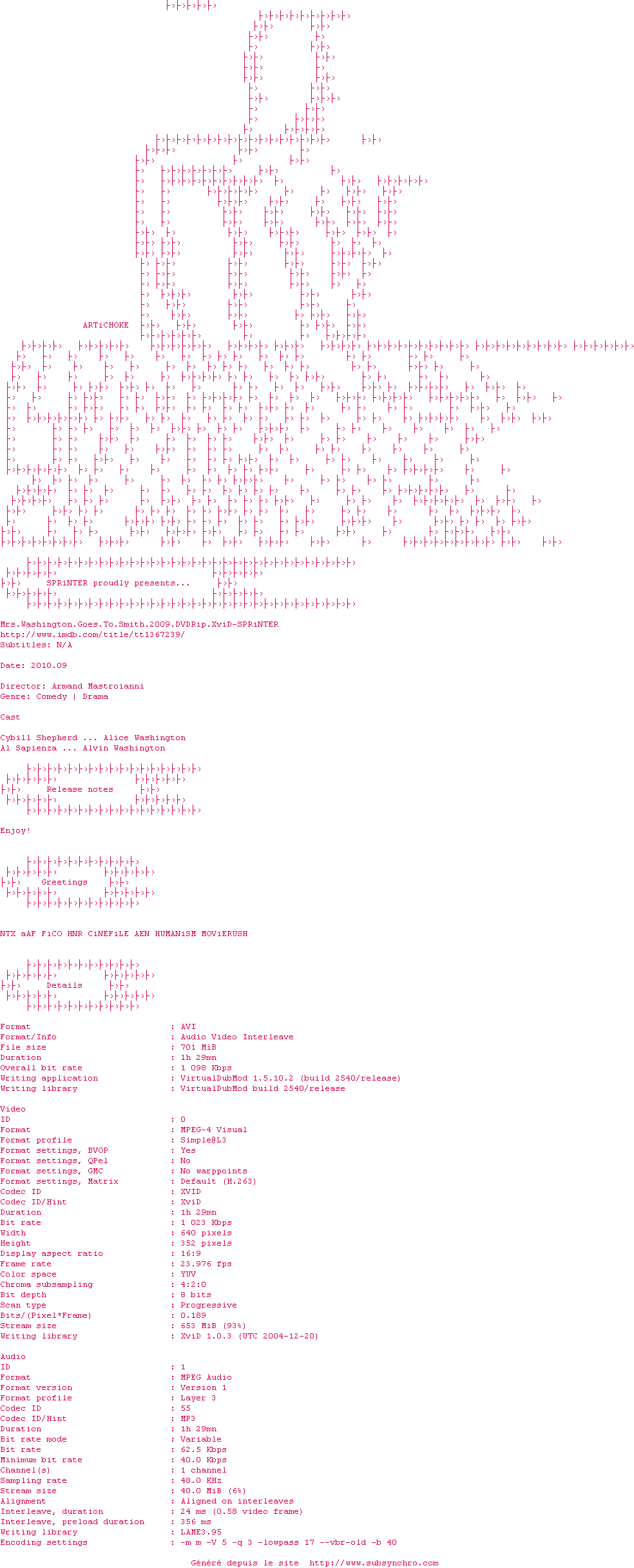 Voir le nfo de la release Mrs.Washington.Goes.To.Smith.2009.DVDRip.XviD-SPRiNTER