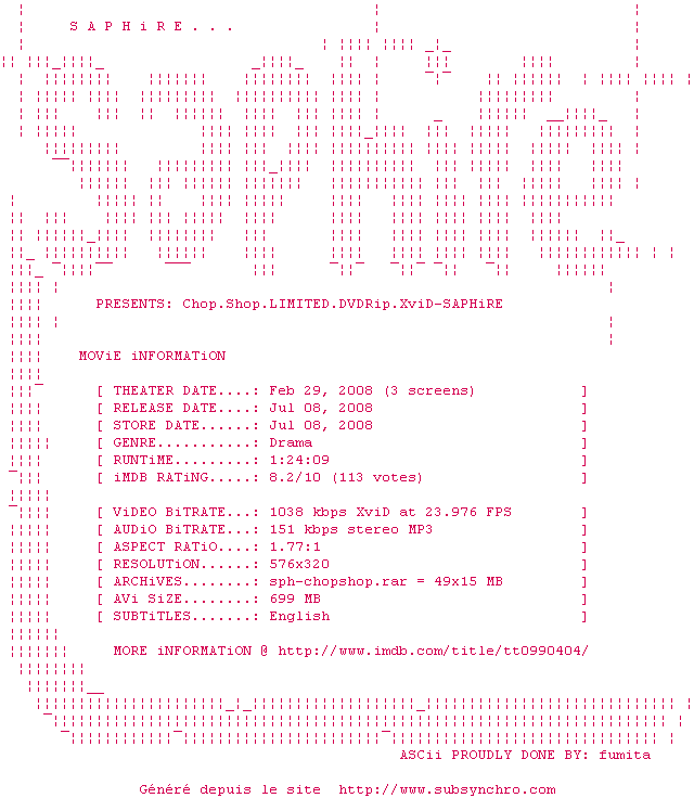 Voir le nfo de la release Speak.2004.DVDRip.XviD-SWiFT