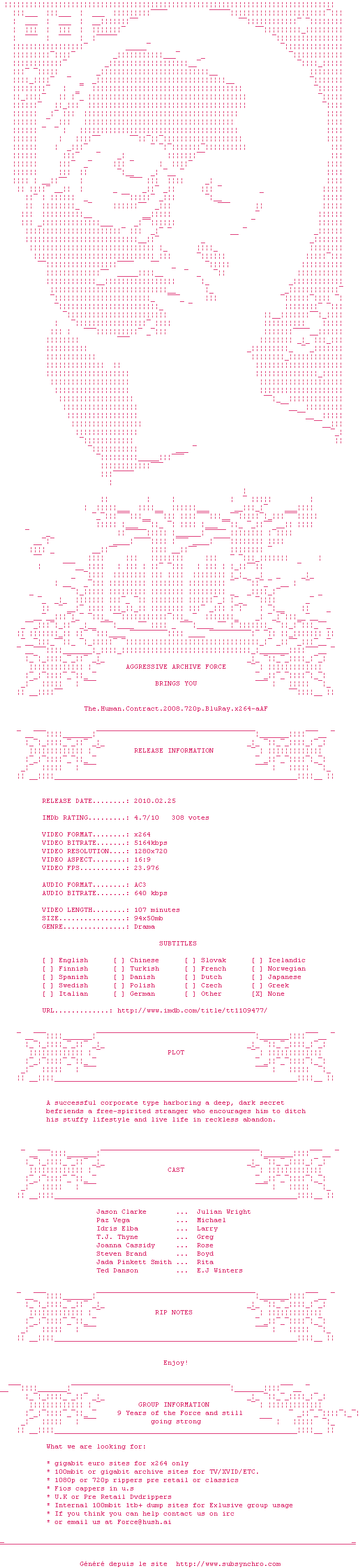 Voir le nfo de la release The.Human.Contract.2008.720p.BluRay.x264-aAF