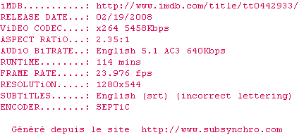 Voir le nfo de la release Bee.Movie.2007.DVDRip.X264.AC3.iNT-TLF