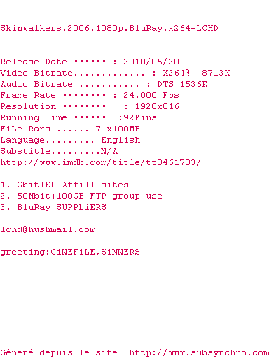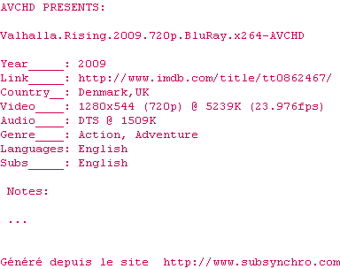 Voir le nfo de la release Valhalla.Rising.2009.1080p.BluRay.x264-AVCHD