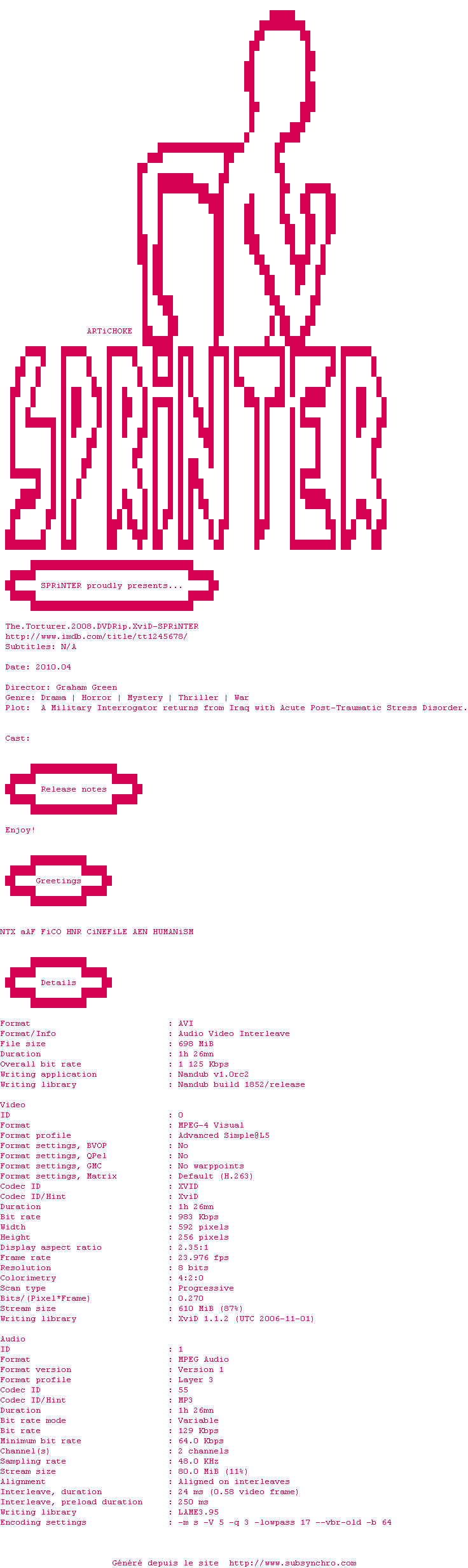 Voir le nfo de la release Avatar.2009.DVDRip.AC3.XViD-LSD