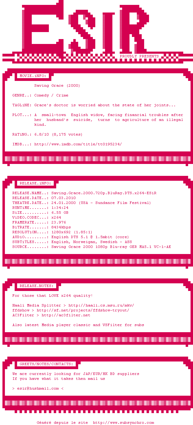 Voir le nfo de la release Agora.2009.1080p.BluRay.x264-BestHD