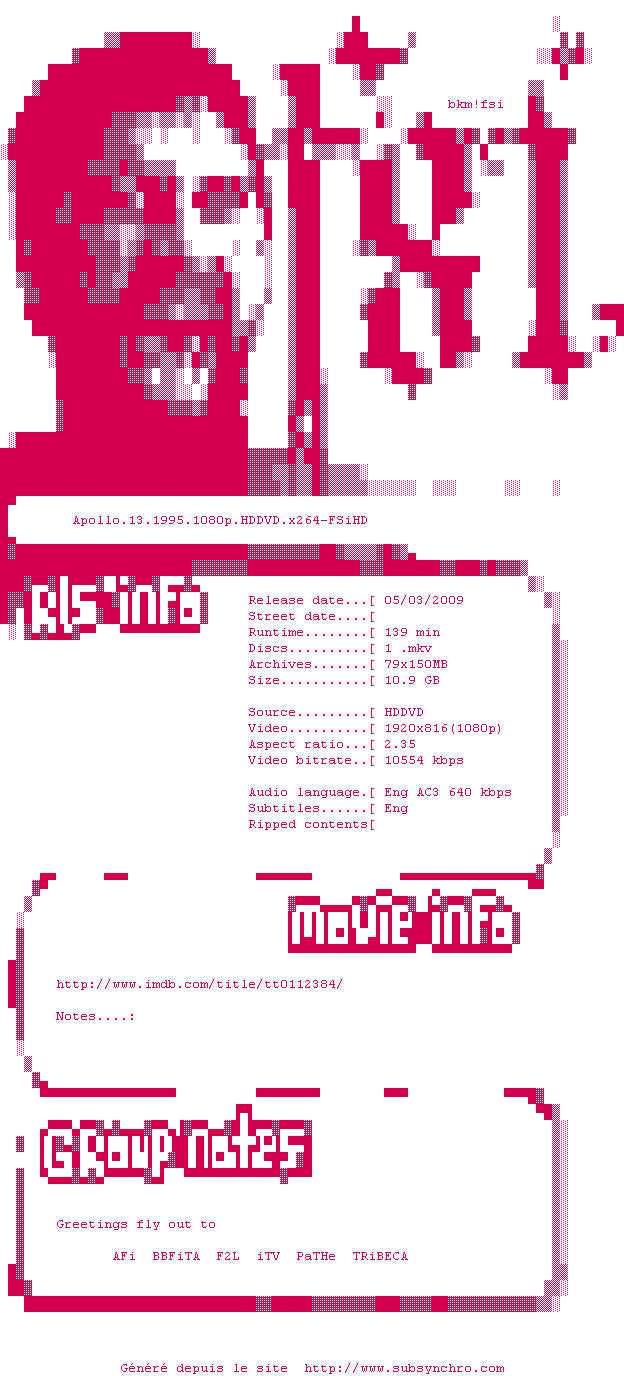 Voir le nfo de la release The.Da.Vinci.Code.2006.720p.BluRay.x264-BestHD