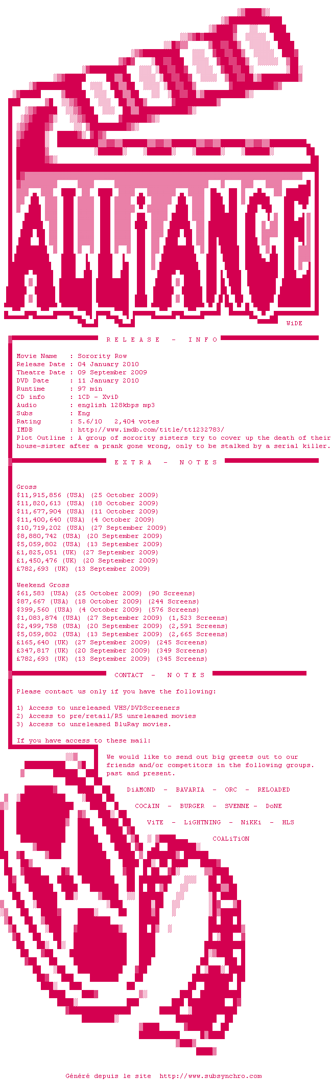 Voir le nfo de la release Sorority.Row.DVDRip.XviD-ALLiANCE