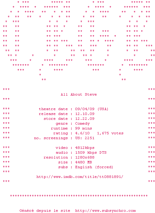Voir le nfo de la release All.About.Steve.2009.DVDRip.Xvid-Moursi