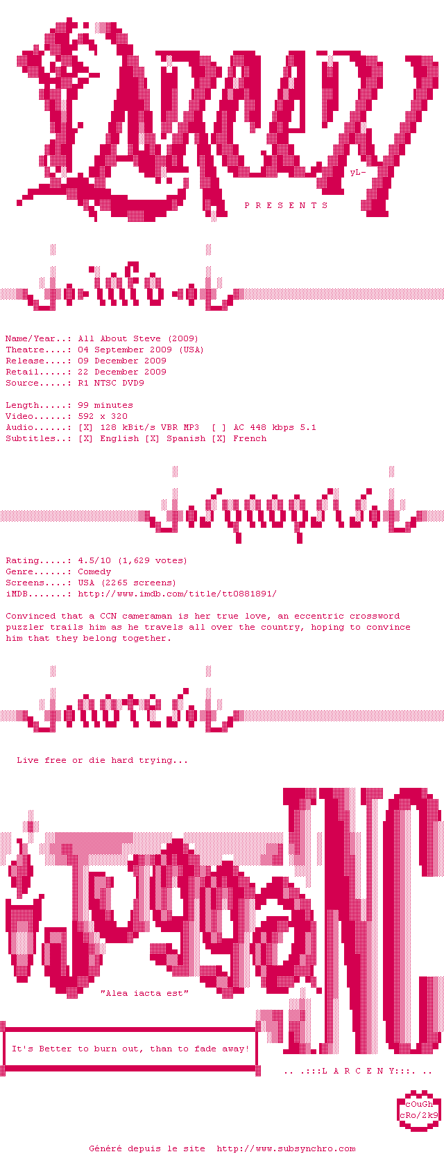 Voir le nfo de la release All.About.Steve.DVDRip.XviD-Larceny