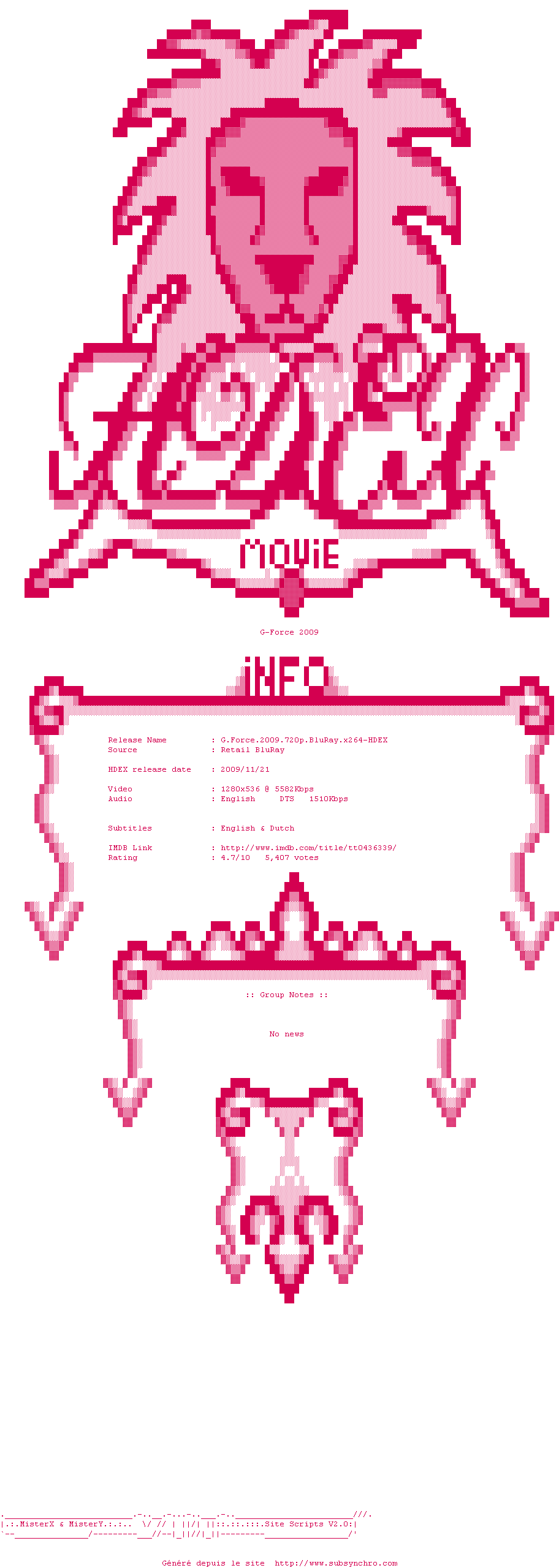 Voir le nfo de la release G-Force.2009.720p.BluRay.x264-HDEX