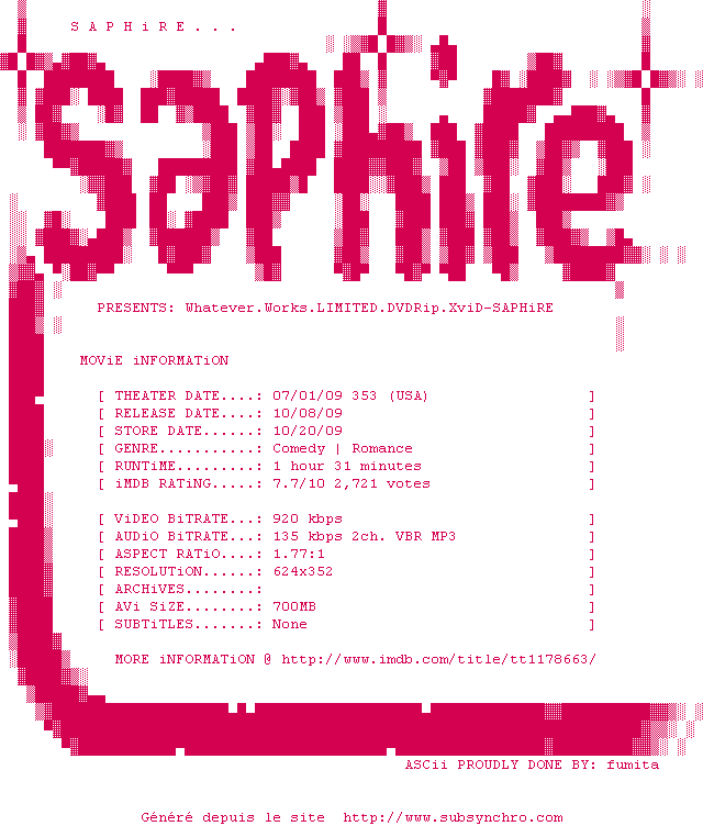 Voir le nfo de la release Snatch.2000.PROPER.720p.BluRay.x264-BestHD