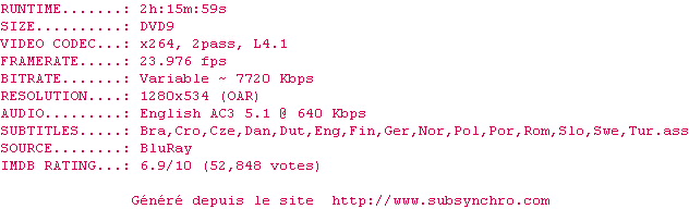 Voir le nfo de la release The.Devils.Tomb.2009.720p.BluRay.x264-BestHD