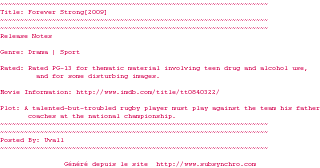 Voir le nfo de la release Forever.Strong.2009.DvDRip-Uvall