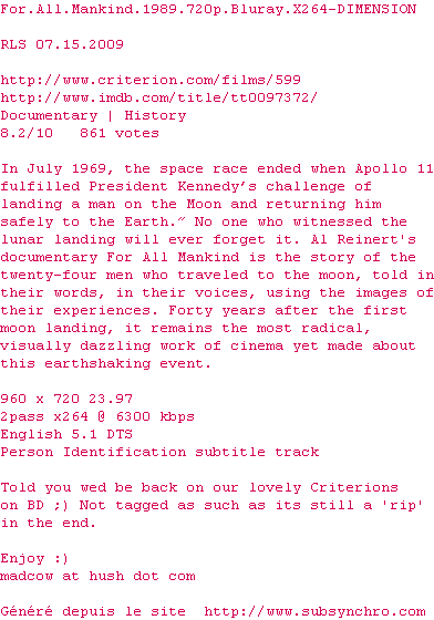 Voir le nfo de la release Watchmen.BluRay.720p.x264.DTS-WiKi