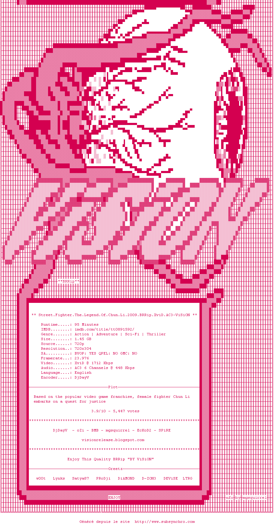 Voir le nfo de la release Swordfish.2001.720p.BRRip.XviD.AC3-FLAWL3SS