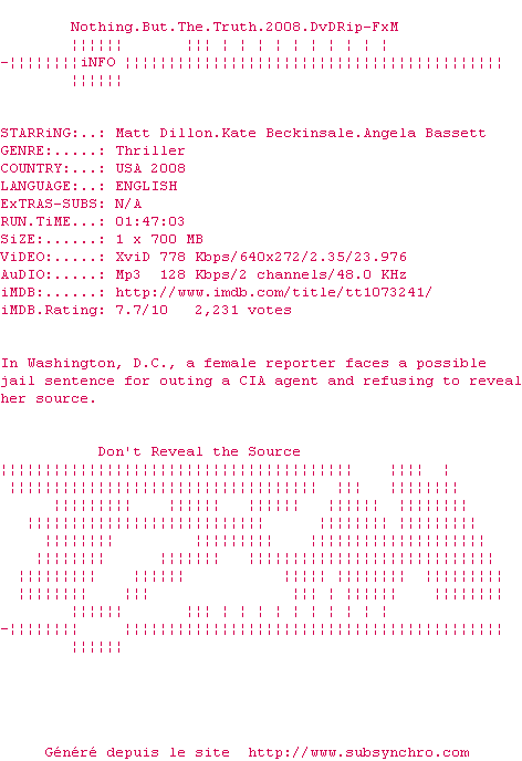 Voir le nfo de la release Nothing.But.The.Truth.2008.DvDRip-FxM