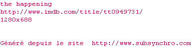 Voir le nfo de la release The.Happening.2008.720P.BLURAY.X264-OUTDATED