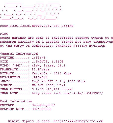Voir le nfo de la release 21.2008.1080p.BluRay.DTS.x264-CtrlHD