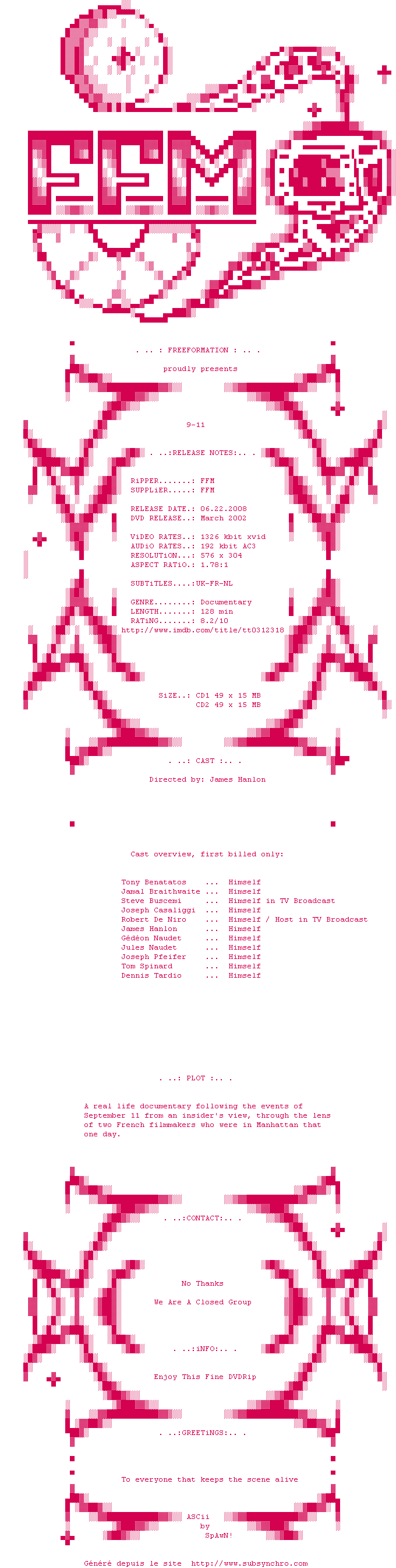 Voir le nfo de la release 9.11.2002.DVDRip.XViD.AC3.iNTERNAL-FFM