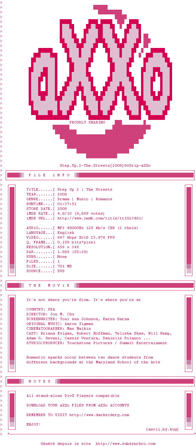 Voir le nfo de la release Pathology.2008.DvDrip-aXXo