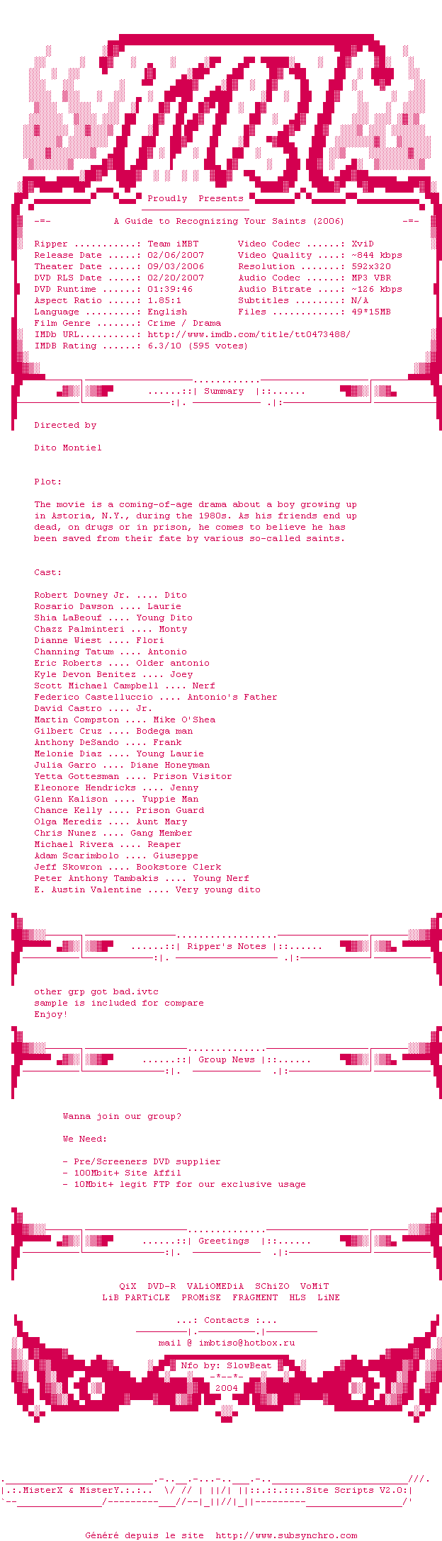 Voir le nfo de la release Jackass.Number.Two.UNRATED.DVDRip.XviD-iMBT