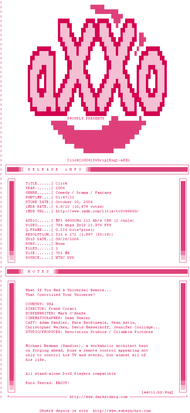 Voir le nfo de la release Click.2006.DvDrip-aXXo