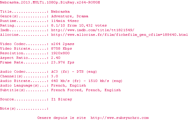 Voir le nfo de la release Havoc.2005.1080p.BluRay.x264-WoAT