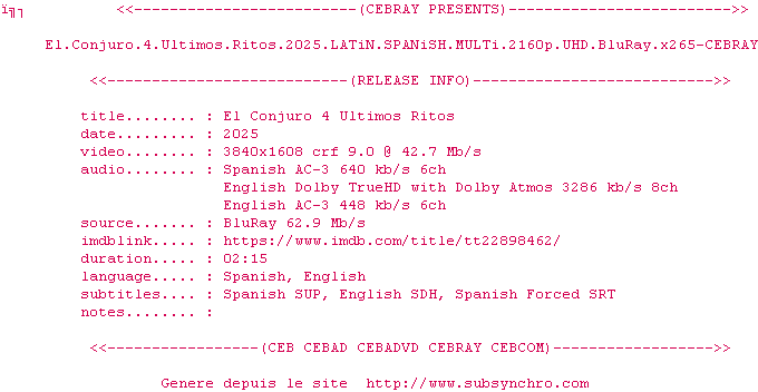 Voir le nfo de la release The.Conjuring.Last.Rites.2025.RERIP.BDRip.x264-KNiVES