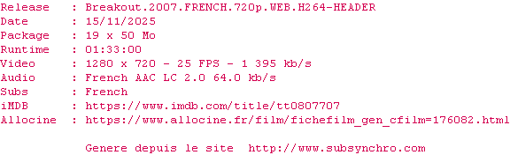 Voir le nfo de la release Breakout.2007.FRENCH.720p.WEB.H264-HEADER