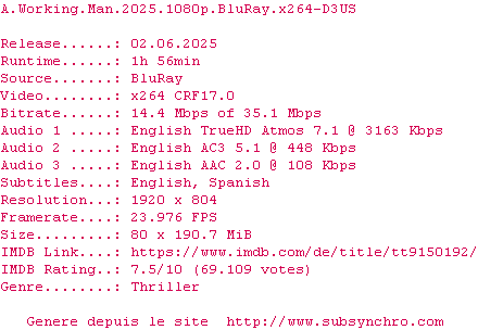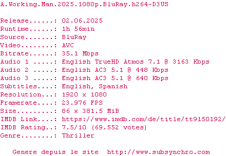 Voir le nfo de la release A.Working.Man.2025.1080p.BluRay.x264-D3US