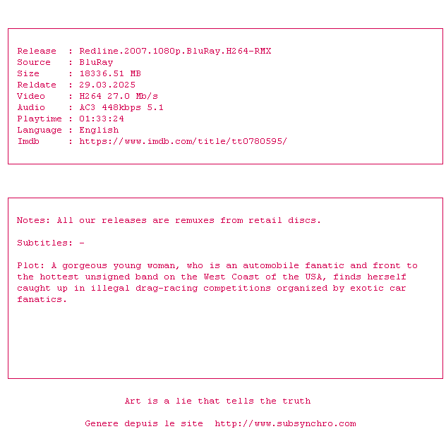Voir le nfo de la release Repo.Men.2010.1080p.BluRay.H264-RMX