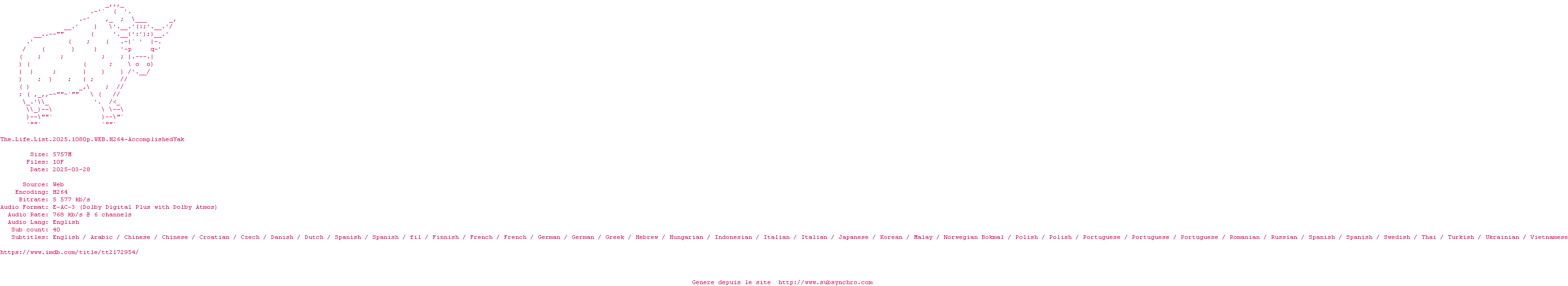 Voir le nfo de la release The.Life.List.2025.1080p.WEB.H264-AccomplishedYak