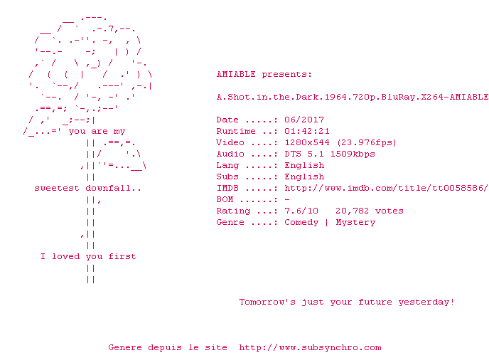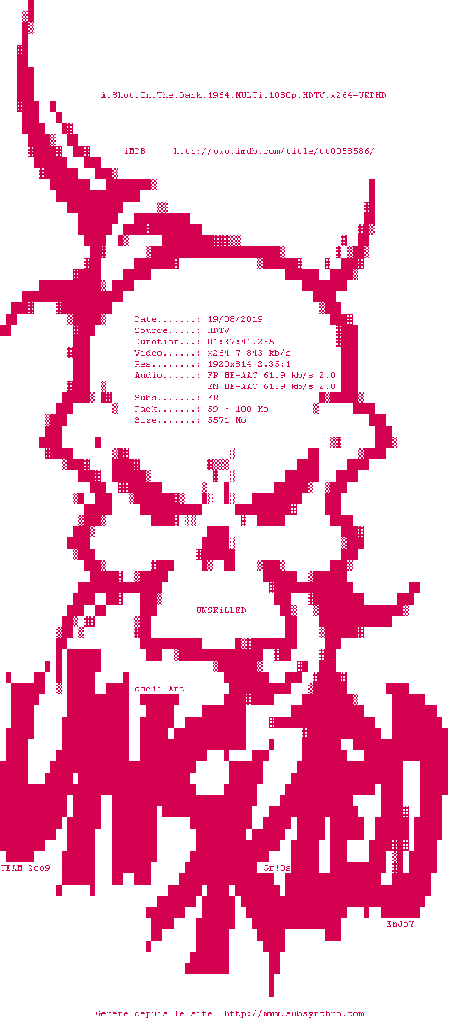 Voir le nfo de la release A.Shot.In.The.Dark.1964.MULTi.1080p.HDTV.x264-UKDHD