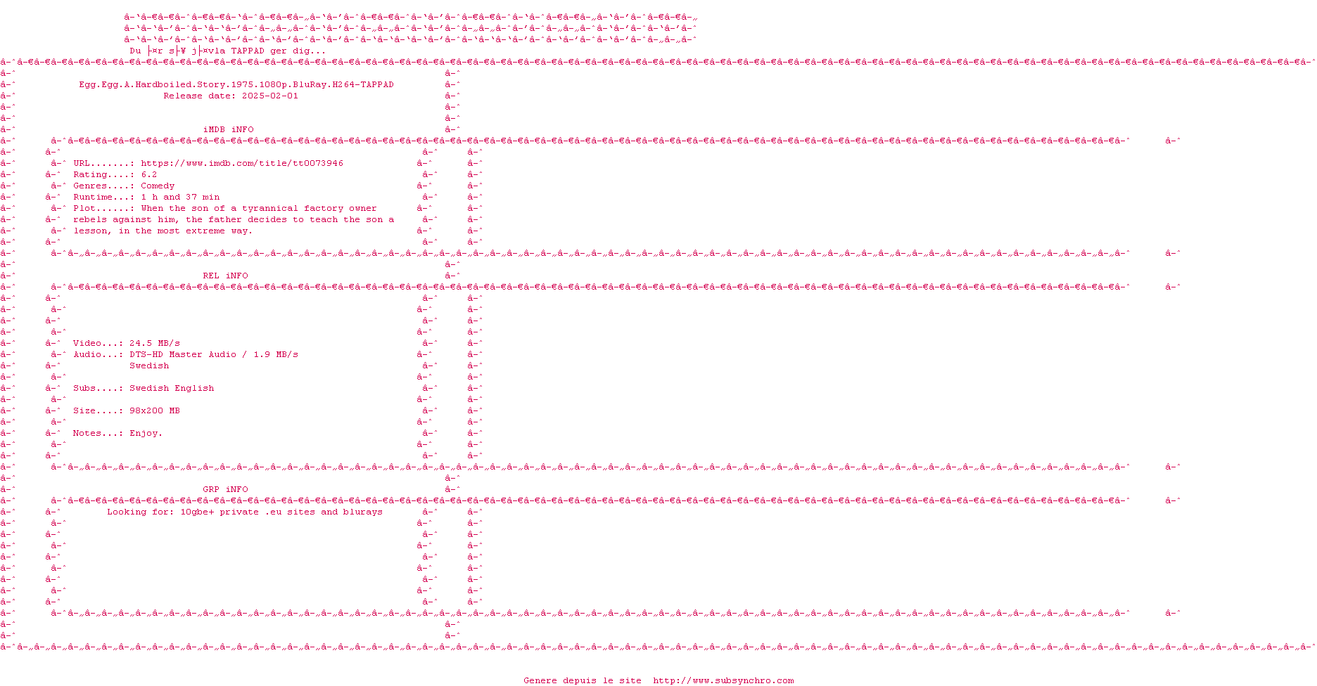 Voir le nfo de la release Hamlet.Goes.Business.1987.1080p.BluRay.H264-ENCOCiDE
