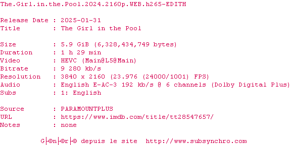 Voir le nfo de la release The.Girl.In.The.Pool.2024.2160p.WEB.H265-EDITH