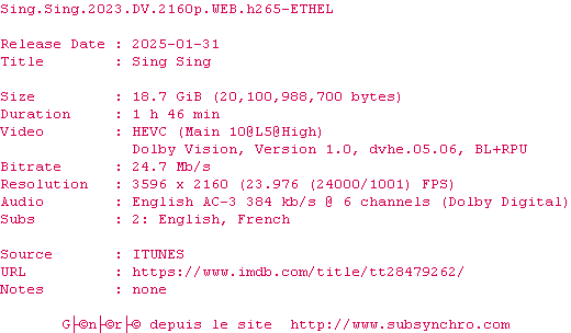 Voir le nfo de la release Sing.Sing.2023.2160p.WEB.H265-ETHEL