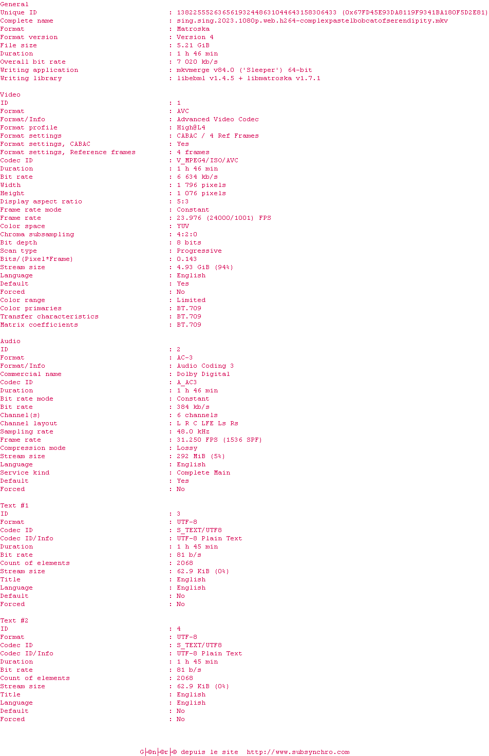 Sous-titres de films synchronises par release