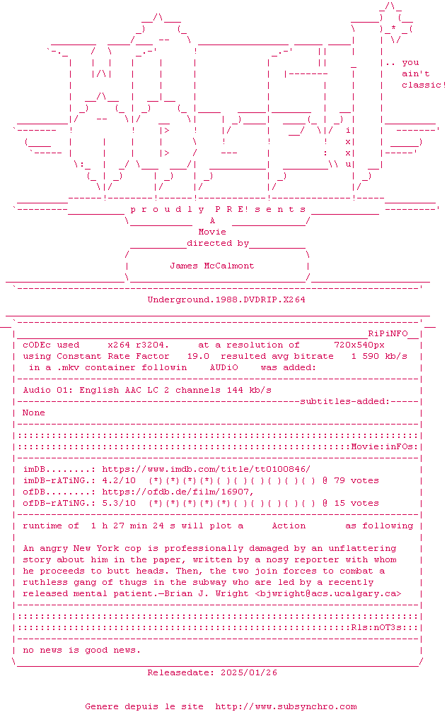 Voir le nfo de la release Rejuvenatrix.1988.DVDRIP.x264-WATCHABLE