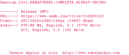 Voir le nfo de la release Sanctum.2011.REMASTERED.COMPLETE.BLURAY-INCUBO