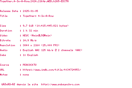 Voir le nfo de la release Together.4-In-A-Row.2024.2160p.WEB.H265-EDiTH