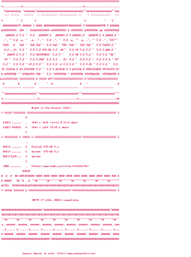 Voir le nfo de la release Night.Of.The.Hunted.2023.BDRip.x264-JustWatch