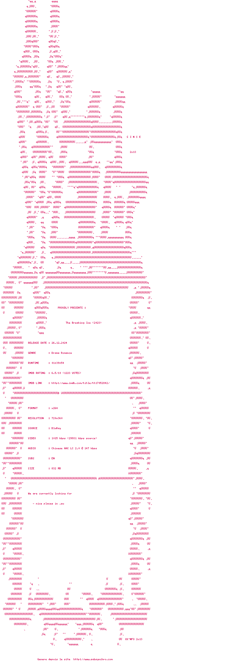 Voir le nfo de la release The.Breaking.Ice.2023.1080p.BluRay.x264-VETO