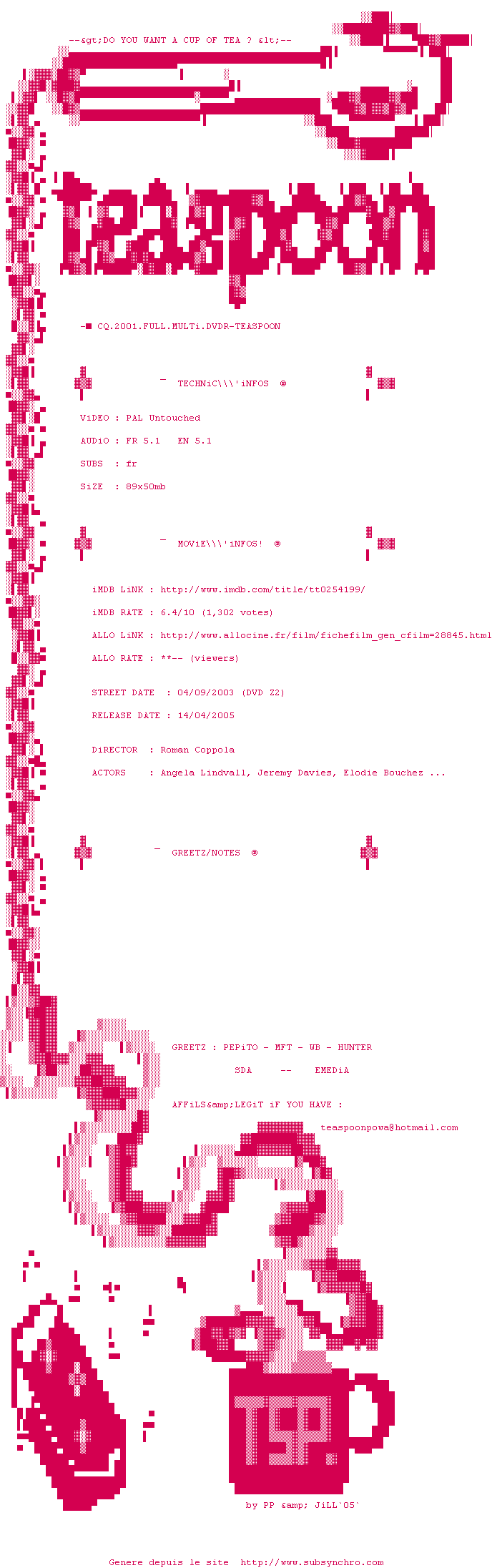 Voir le nfo de la release Sleepless.2001.BDRip.x264-RUSTED