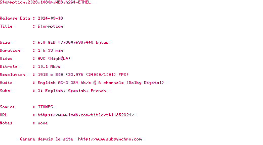 Voir le nfo de la release Stopmotion.2023.1080p.WEB.H264-ETHEL