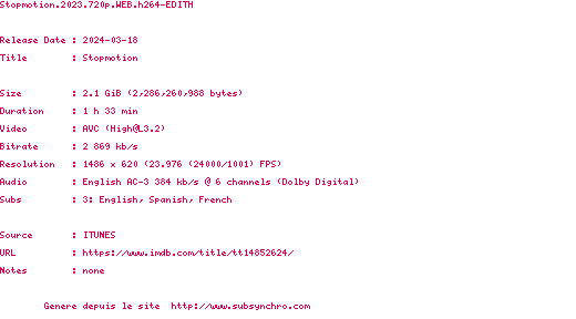 Voir le nfo de la release Stopmotion.2023.720p.WEB.H264-EDITH