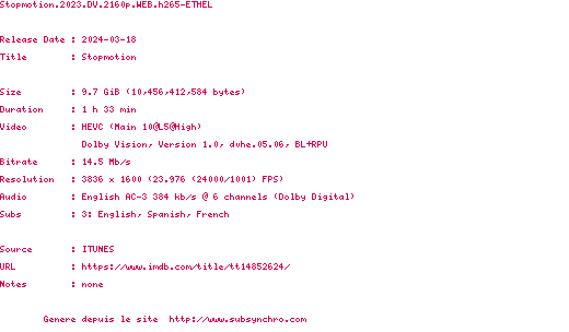 Voir le nfo de la release Stopmotion.2023.HDR.2160p.WEB.H265-ETHEL