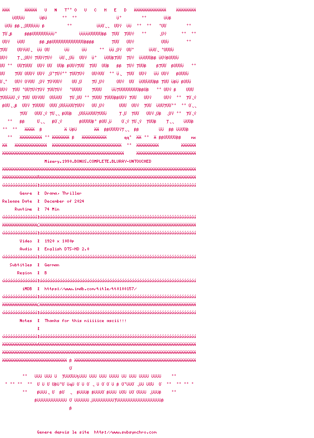 Voir le nfo de la release Misery.1990.REMASTERED.COMPLETE.BLURAY-UNTOUCHED