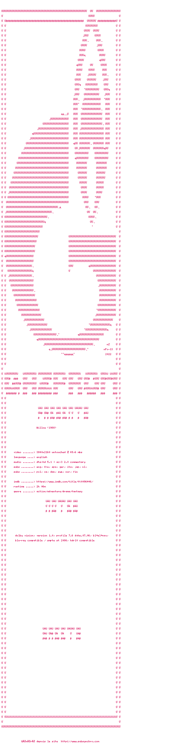 Voir le nfo de la release Willow.1988.2160p.UHD.BluRay.H265-GAZPROM