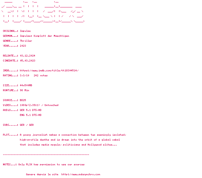 Voir le nfo de la release Schlitter.2023.DUAL.COMPLETE.BLURAY-FULLSiZE