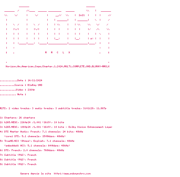 Voir le nfo de la release Dawn.Of.The.Dragonslayer.2011.STV.NTSC.MULTi.DVDR-FUTiL
